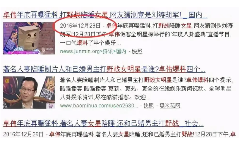 但这一切都在卓伟的一次爆料之后发生了巨大变化。当时卓伟爆料了一则关于人妻陪睡制片人的猛料,料中并没有说明究竟是哪个女明星。