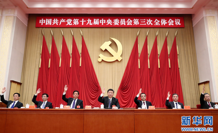 中国共产党第十九届中央委员会第三次全体会议,于2018年2月26日至28日在北京举行。中央政治局主持会议。 新华社记者 鞠鹏/摄