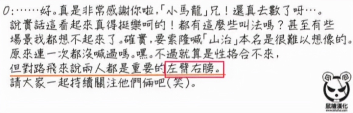 尾田大神曾在sbs强调索隆山治是路飞的左膀右臂