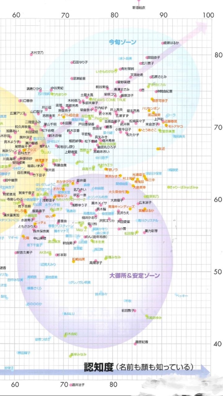 日本经济新闻社旗下的《日经娱乐版》,每年都会在娱乐、音乐、文化等各界选取上千位名人,进行受众影响力调查。可以说这份调查报告是日本娱乐圈最最权威的艺人年度排名。而在去年的女演员统计中,gakki以天外飞仙般的流量凌驾于众多日本女演员之上。至于高到什么程度呢?请大家自行观看↓(有点费眼睛)