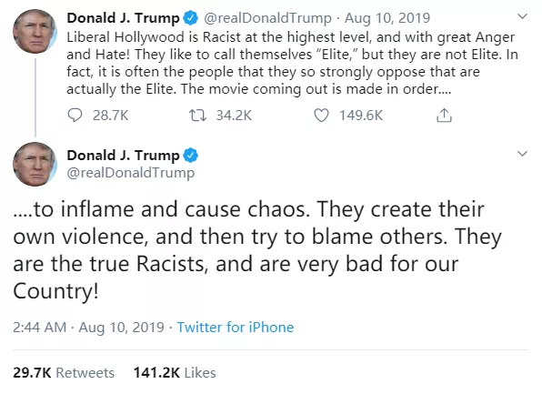 因为一部电影,特朗普给整个好莱坞扣上了一顶“最高阶的种族主义”的大帽子。
