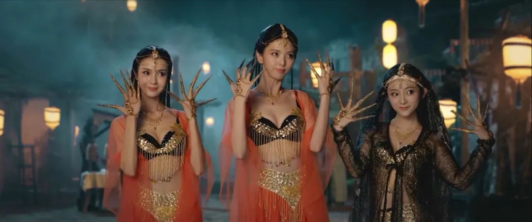 服化道方面其服装造型的设计和所持兵器的打造都很用心。三女的服饰都按其性格特点进行设计,跳西域蛇腾舞时所穿的舞裙也很亮眼,这些也都是优点。