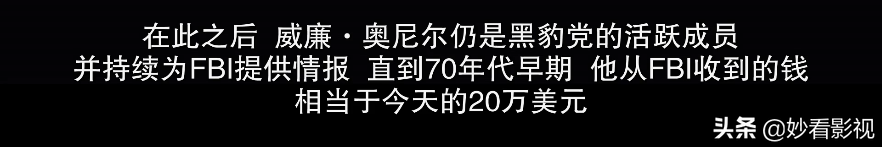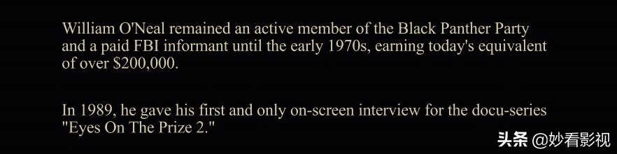 不仅要给黑豹党安插眼线,还要让黑人之间分化相互仇恨。威廉·奥尼尔先是被当做眼线,安插进黑豹党,黑豹党几近消亡后,还要把威廉·奥尼尔拿出来鞭尸,榨干最后一滴剩余价值。