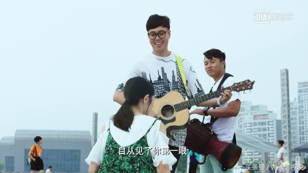 所以影片一开头,我们首先认识的是这两位吉他男,作为男主,虽然没有帅的那么惊天动地,但这颜值至少也不讨人厌,凑合吧!但如果你是这么想的话,那么小编告诉你一个大写的“错”字!其实这两位只是路人甲,乙。帅不过1分钟就去领盒饭了!