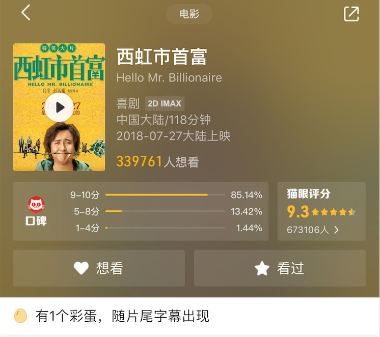 猫眼甚至奶《西虹市首富》的最终总票房超越《我不是药神》。
