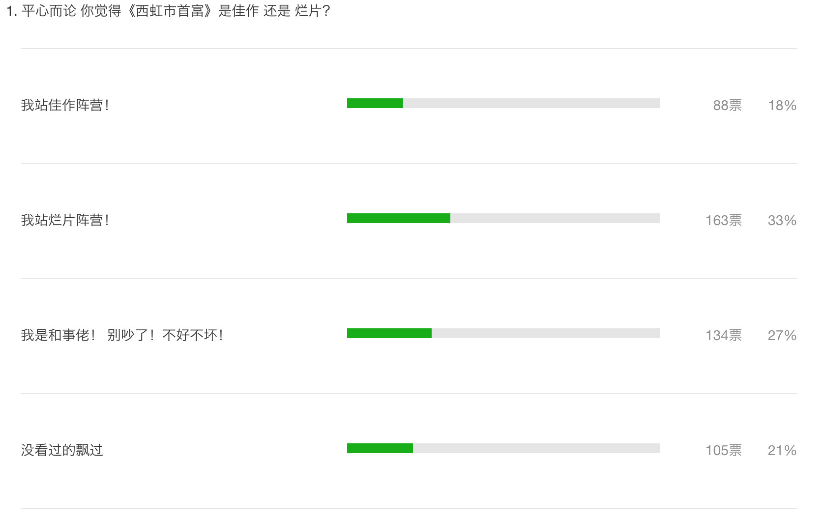 33%的粉丝和口袋君一样,站了烂片阵营。