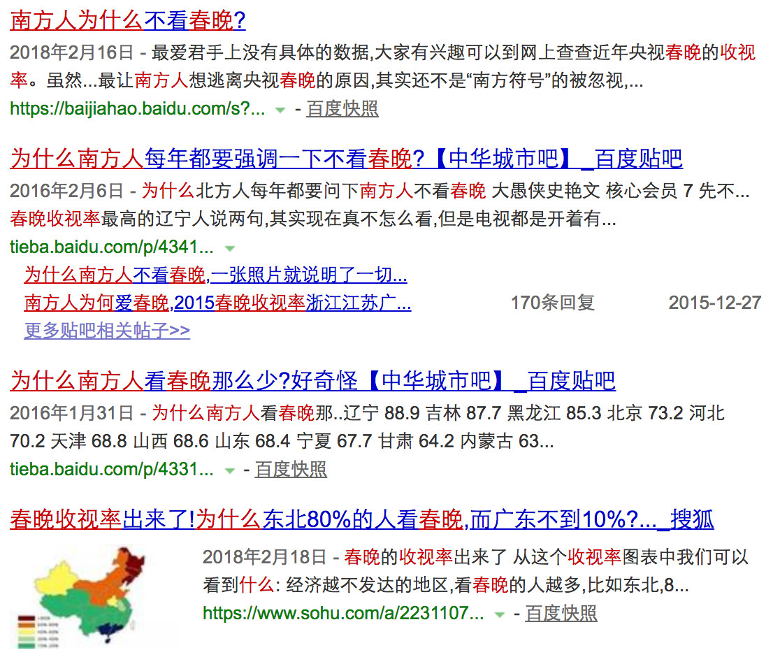 上网一查,果然很多帖子在讨论:南方人为什么不看春晚?
