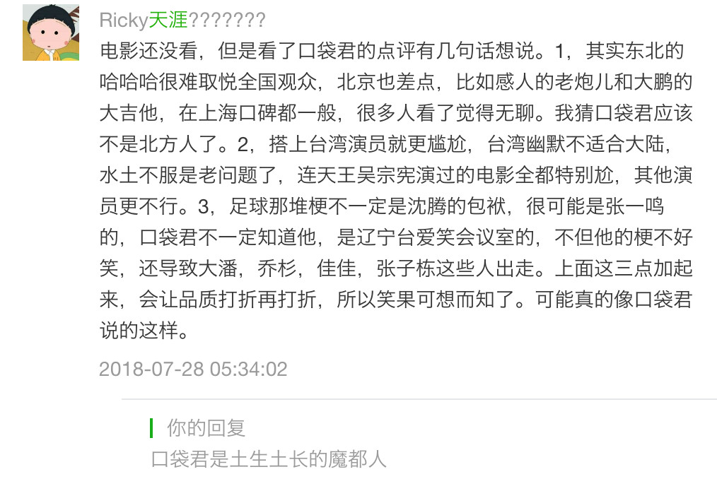 口袋电影粉丝中,有一位:一语道破天机的神人