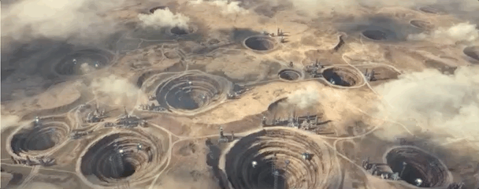 在阿布回忆莱尔特文明的兴衰历史时,从鼎盛时期的繁华都市再到衰败时期的城市垃圾山。