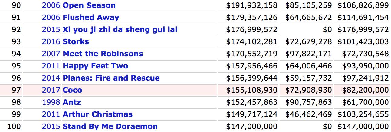 全球最卖座动画票房榜 top 100 截图人们都说「皮克斯动画」票房吸金能力强,究竟有多强?
