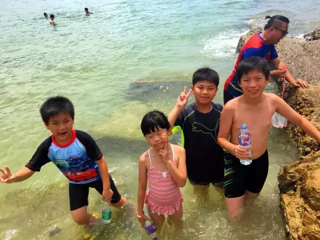 晒掉几层皮的灼热海边除了戏水还可以捕捞小蟹小鱼,不过最后孩子们都把它们放生了