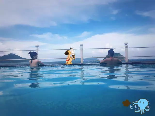 入住月半湾的最大好处就是有私家泳池,池水有一半是海水,所以完全能感受泡海里的感觉,还不用担心挤得会怀孕~