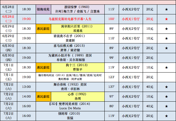 中国电影资料馆下周放映安排