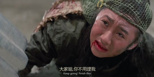 高丽虹扮演的游击队大家姐身手不凡,不过结尾军火库里的行为有点不解,不至于要对英叔开两枪吧。现实中高丽虹也是港片时代的打女,尽管出身港姐冠军,不过热爱功夫片,隧拜洪金宝为师学习功夫,后来还结婚了。从师徒到夫妻,也算一段佳话。