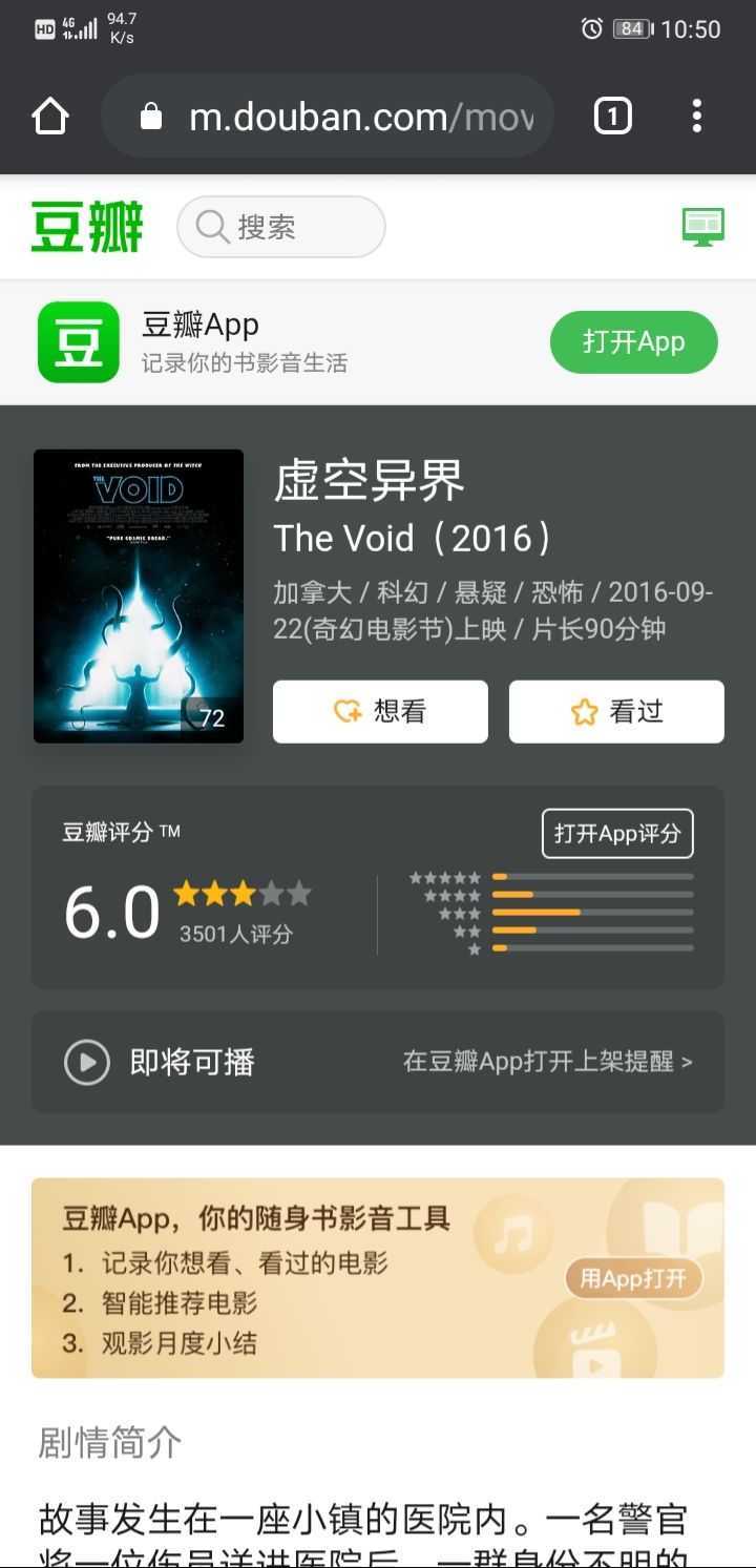 评语:这个系列的电影,克苏鲁系的诡异并不浓。这一部的故事对未知生物的表现也很直白,缺乏克苏鲁神话诡异阴暗的气质。但是电影中普通人面对未知怪物的刻画非常真实,伪纪录片的拍摄方式,也让电影充满了紧张和压迫,军队和怪物硬钢的片段是全片高潮让人一度兴奋。没有了人类面对克苏鲁怪物时的无助和绝望,整体更像是科幻灾难片。也有人说这是一部科幻灾难爱情片,但其实这真的是克苏鲁架构的电影。