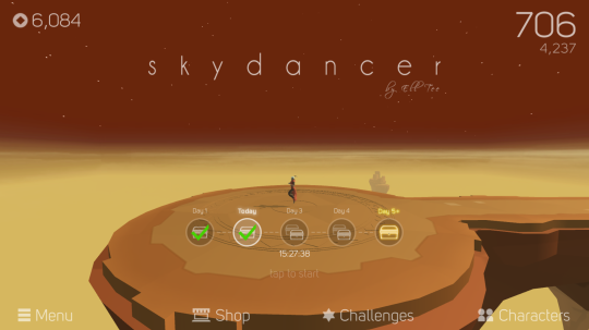 和其他跑酷手游一样,除了要左右移动,躲避开迎面而来的障碍物,《sky dancer》最大的亮点在于跳跃,玩家要不断跳跃,从一个平台跳到另一个,从高处的平台穿越重重碎石到达另一个平台。