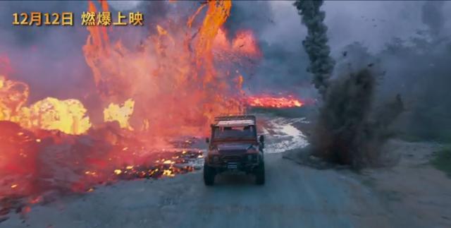 窦骁开着越野车一路狂奔,靠着主角光环,众人躲过了火山的各种随机爆破,但是还是在侧面被炸到,越野车飞起,翻滚了几圈。一车人没系安全带仍然没事,而且车也没事继续猛开,还是倒挡,飞过了河道,是拍的速度与激情吗?