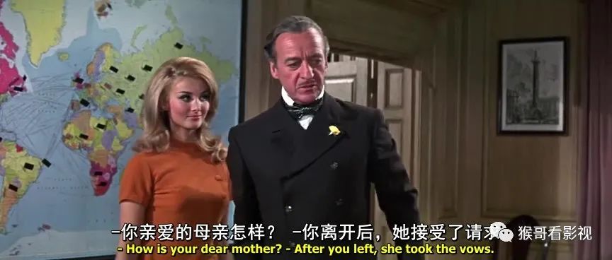 已经退休的老邦德由大卫尼丁饰演,中国观众可能对他多年后出演的《尼罗河上的惨案》一片中的雷斯上校有些印象,大卫尼丁是一位影帝级大咖了。