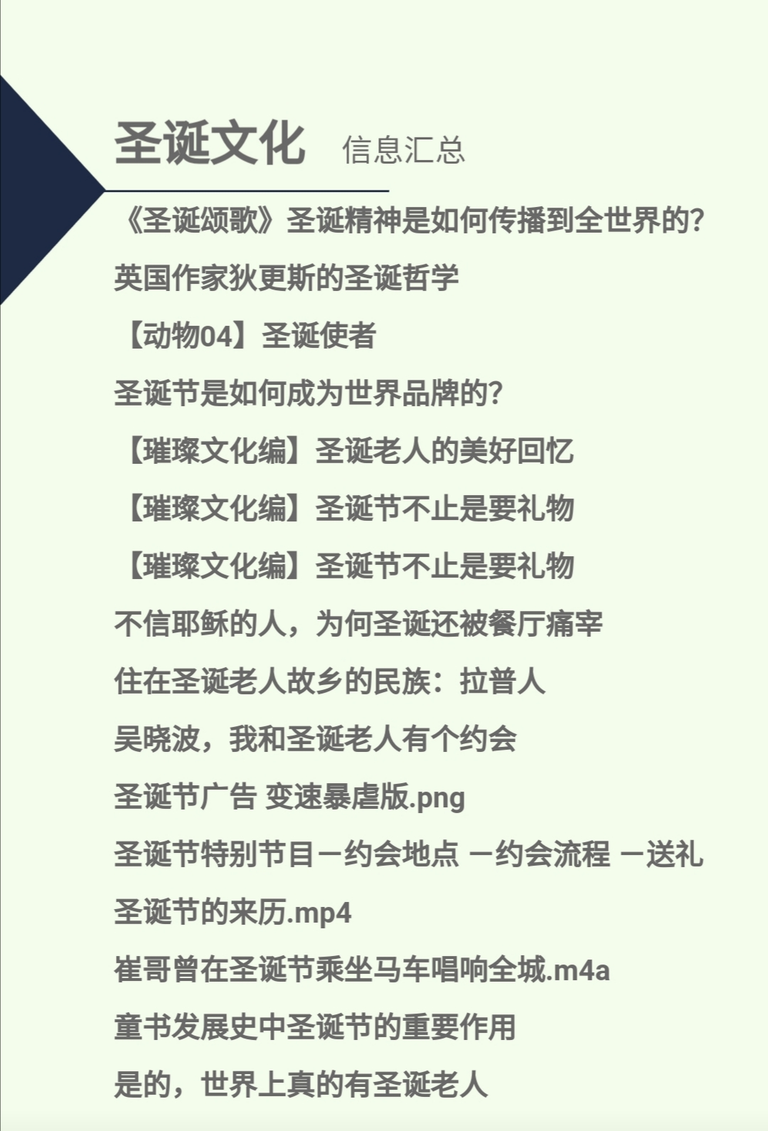 [道兰][nhk纪录片]纪实72小时-便利店的圣诞快乐、《圣诞颂歌》:狄更斯流传最广的作品,圣诞精神是如何传播到全世界的?、《大卫·科波菲尔》:英国作家狄更斯的圣诞哲学、【动物04】圣诞使者、【品牌商学院】圣诞节是如何成为世界品牌的?为什么抵制圣诞节没有用?、【璀璨文化编】圣诞老人的美好回忆 圣诞节不止是要礼物 圣诞节不止是要礼物、不信耶稣的人,为何圣诞还被餐厅痛宰_李饷:趣读消费心理学在线听_营销-喜马拉雅fm、住在圣诞老人故乡的民族:拉普人、吴晓波,我和圣诞老人有个约会、圣诞特辑·永不过时的maxmara、圣诞节广告 变速暴虐版.png、圣诞节特别节目-约会地点-约会流程-送礼、圣诞节的来历、崔哥曾在圣诞节乘坐马车唱响全城、收获——儿童认知、心理看圣诞;童书发展史中圣诞节的重要作用、狄更斯流传最广的作品,圣诞精神是如何传播到全世界的?、是的,世界上真的有圣诞老人、科学队长北极_ 驯鹿:圣诞老人的好伙伴…… ……