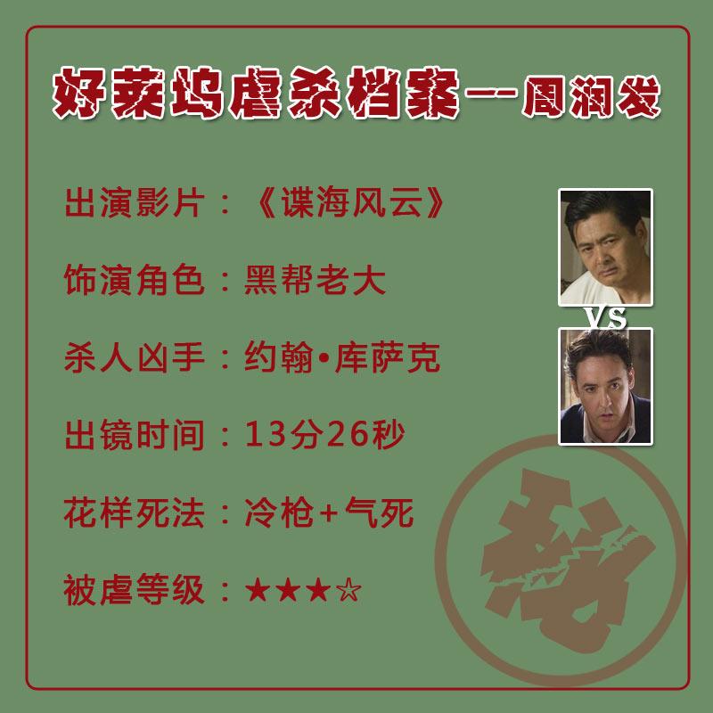 但角色的设定简直是失败至极,身份是黑帮+汉奸,情感线是被老美带绿帽子,最后的大开杀戒完全没有必要,还最终导致了自己中枪。