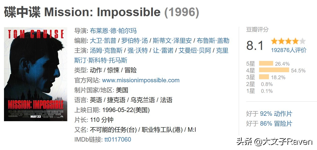 相比后面的碟中谍电影,碟中谍1展现的都是阿汤哥当年的神颜。那帅的,简直了。