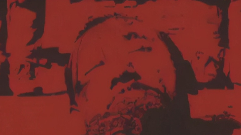 这里,黑白影像最终成了鲜艳刺眼的血红色。