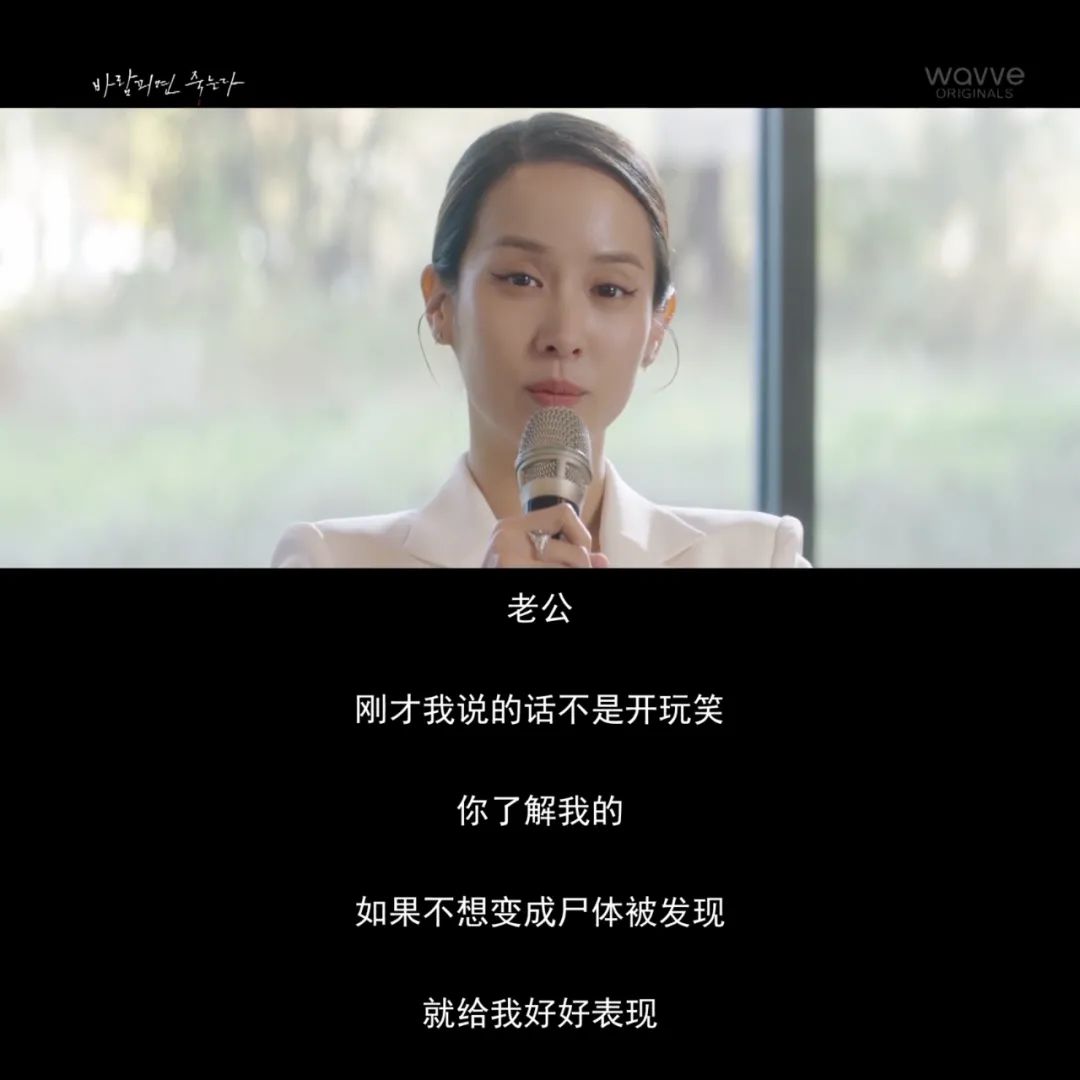这部剧一共16集,现在更新到了第六集。光看剧名就知道,这讲的不是什么容忍丈夫出轨的故事,而是部带着黑色幽默氛围的爱情悬疑剧。