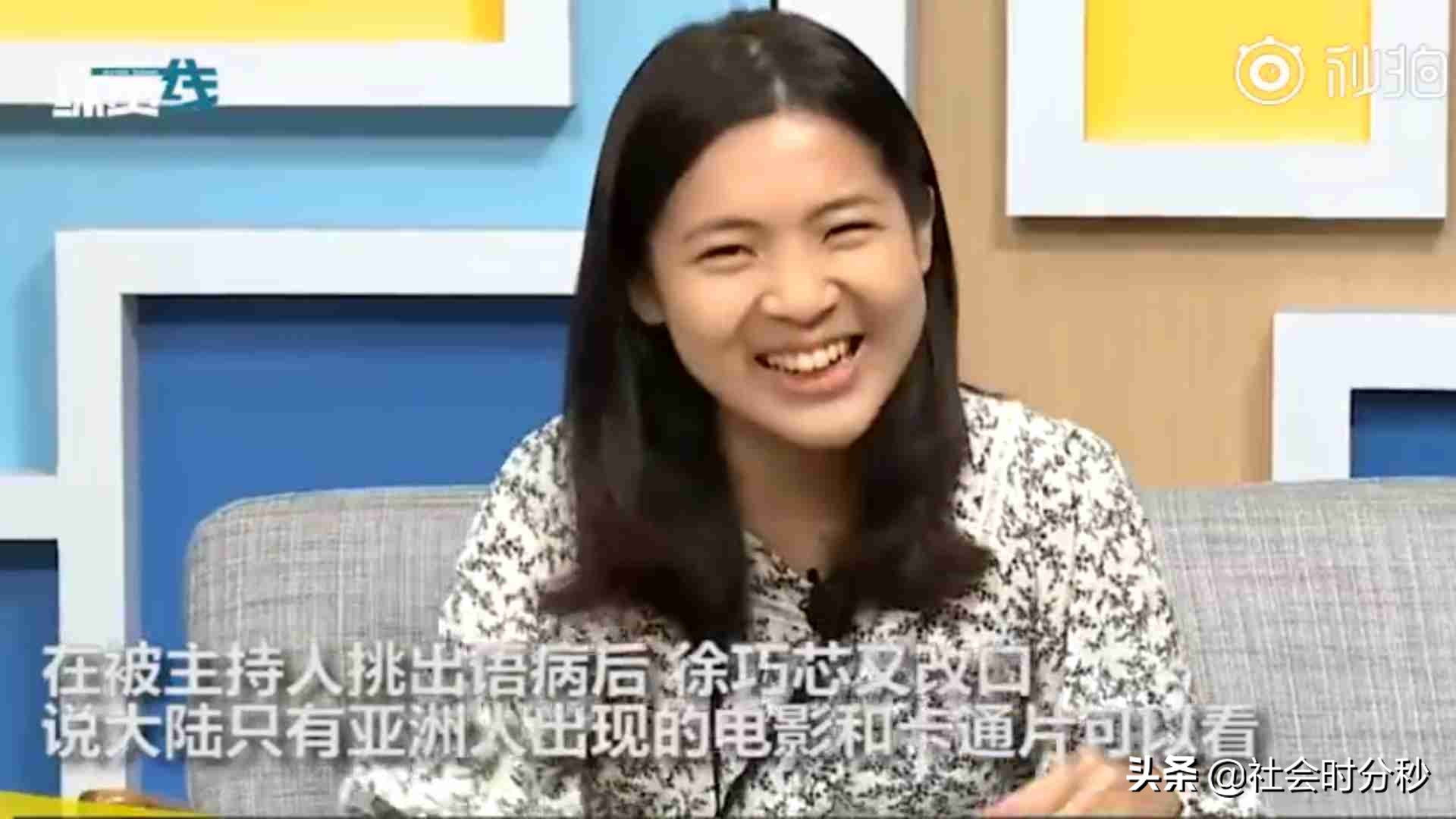 ?据悉,又网友扒出台湾省台北市的一名议员在节目中的惊人言论。这位名叫徐巧芯的台北女议员,口口声声说自己刚从大陆回来,她洋洋得意地在节目中说,大陆影院看不到好莱坞真人片,只能看卡通片。她说,大陆的电影院“是没有在播一般白人的好莱坞电影的,目前。”主持人立即反驳:“黑人好莱坞不行吗?你这个描述不太对哎,种族歧视!”这名女议员又改口:“只有黄种人,只有卡通,没有洋人。”