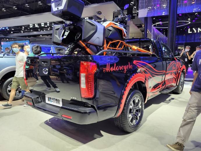 新车采用单排车身结构,将车后备箱的空间尽可能扩大,货箱长宽高分别为2480mmx1520mmx538mm,加上高强度梯形车架、超承载性能悬架等装备,货箱能够装载2米到2.4米的机车,400kg超强运载能力。新车在后备箱中专门设置了给摩托车用于固定的卡槽,可以有效地固定摩托车。