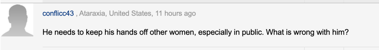 “他应该把他的手从其他女人身上拿开,特别是在公共场合,他脑子坏了吗??”
