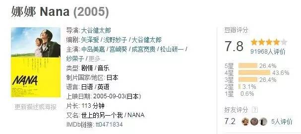 2005年被奉为正面案例的《娜娜》,豆瓣评分7.8;