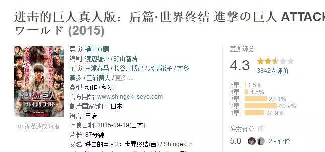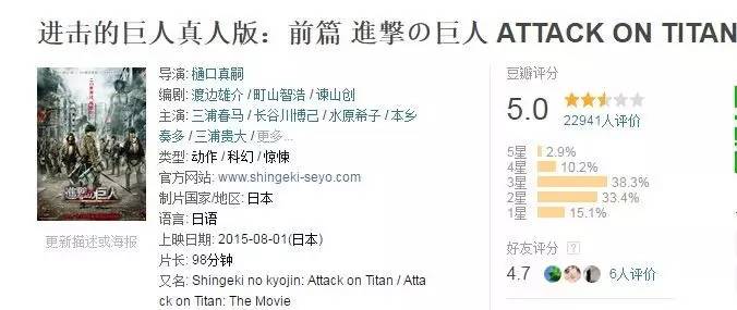 到《进击的巨人》前后篇分别只有5.0和4.3