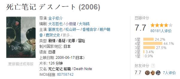 次年同样成功的《死亡笔记》评分7.7,基本持平;
