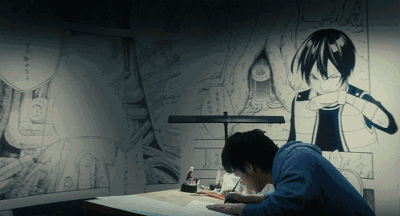 主要的动画镜头,都是出现在主角进行漫画创作时。