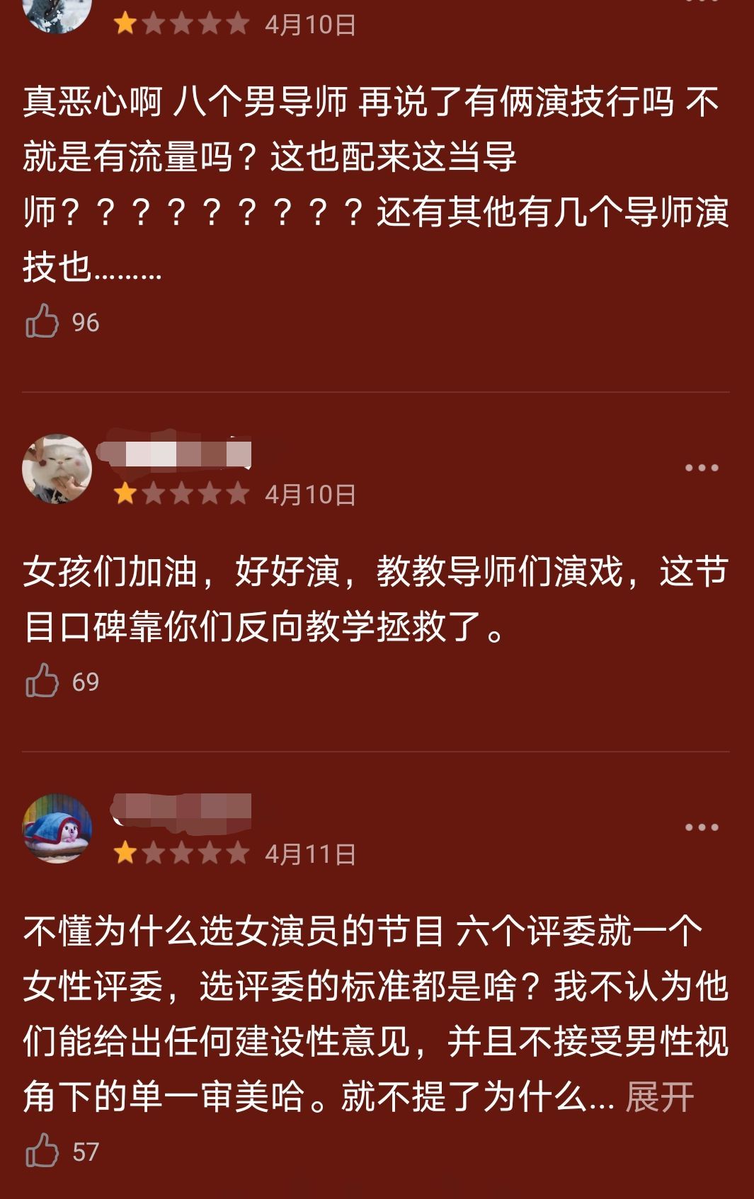 这个号称“我是女演员”的综艺,几乎全是男导师。