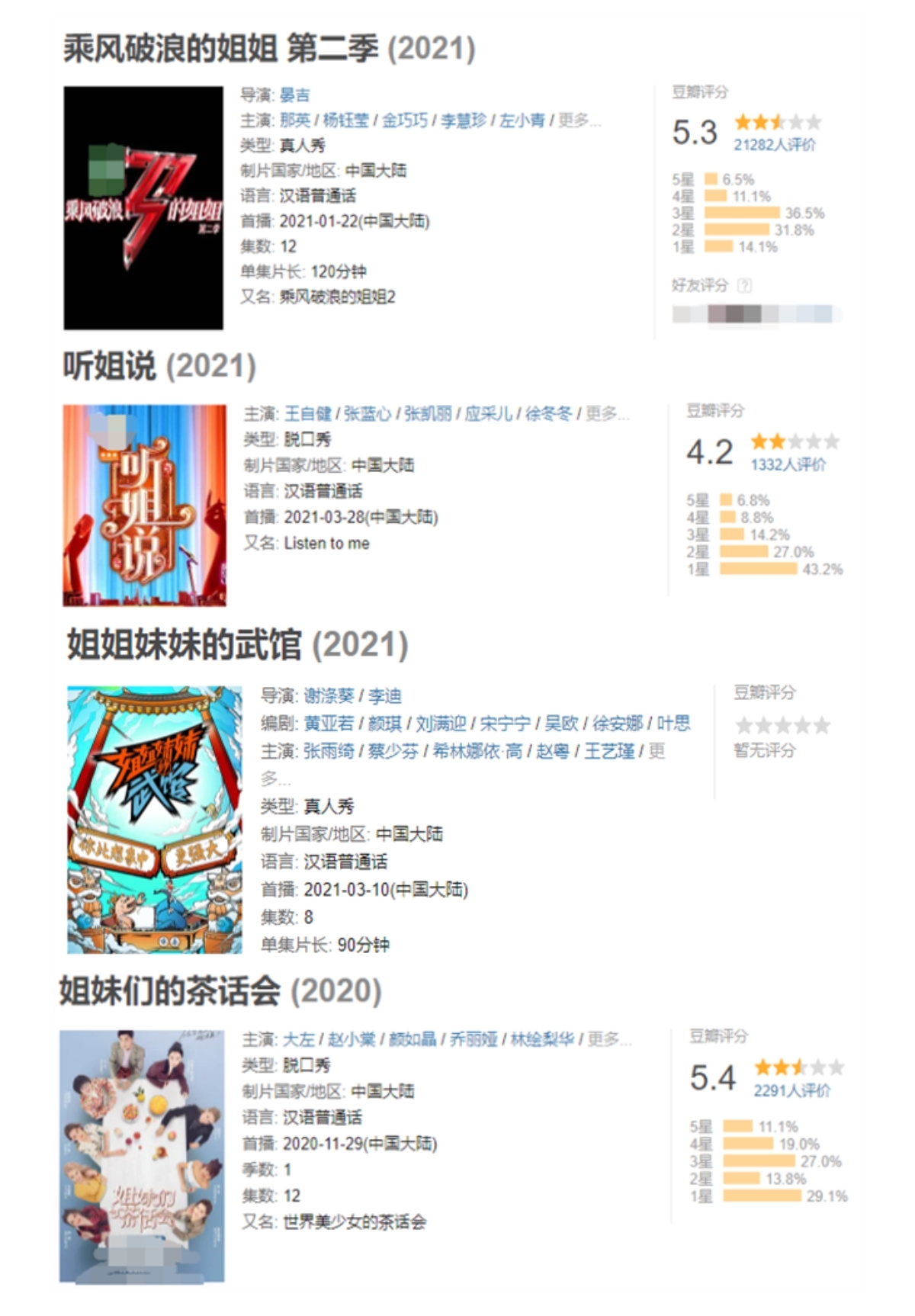只见女明星为主角,却不见女性话题为主导,无论是节目形式还是深度均停留在远古世纪,只不过是一个换了壳的跟风之作,不仅跳脱不出桎梏,反而徒增焦虑。