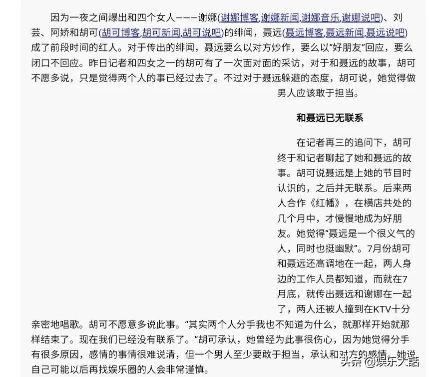 至于他们为何分手,外界众说纷纭,有人说聂远没有担当,有人说外人介入,从胡可的言谈中可以窥视一二,“那样开始那样结束,不知道为什么?”。
