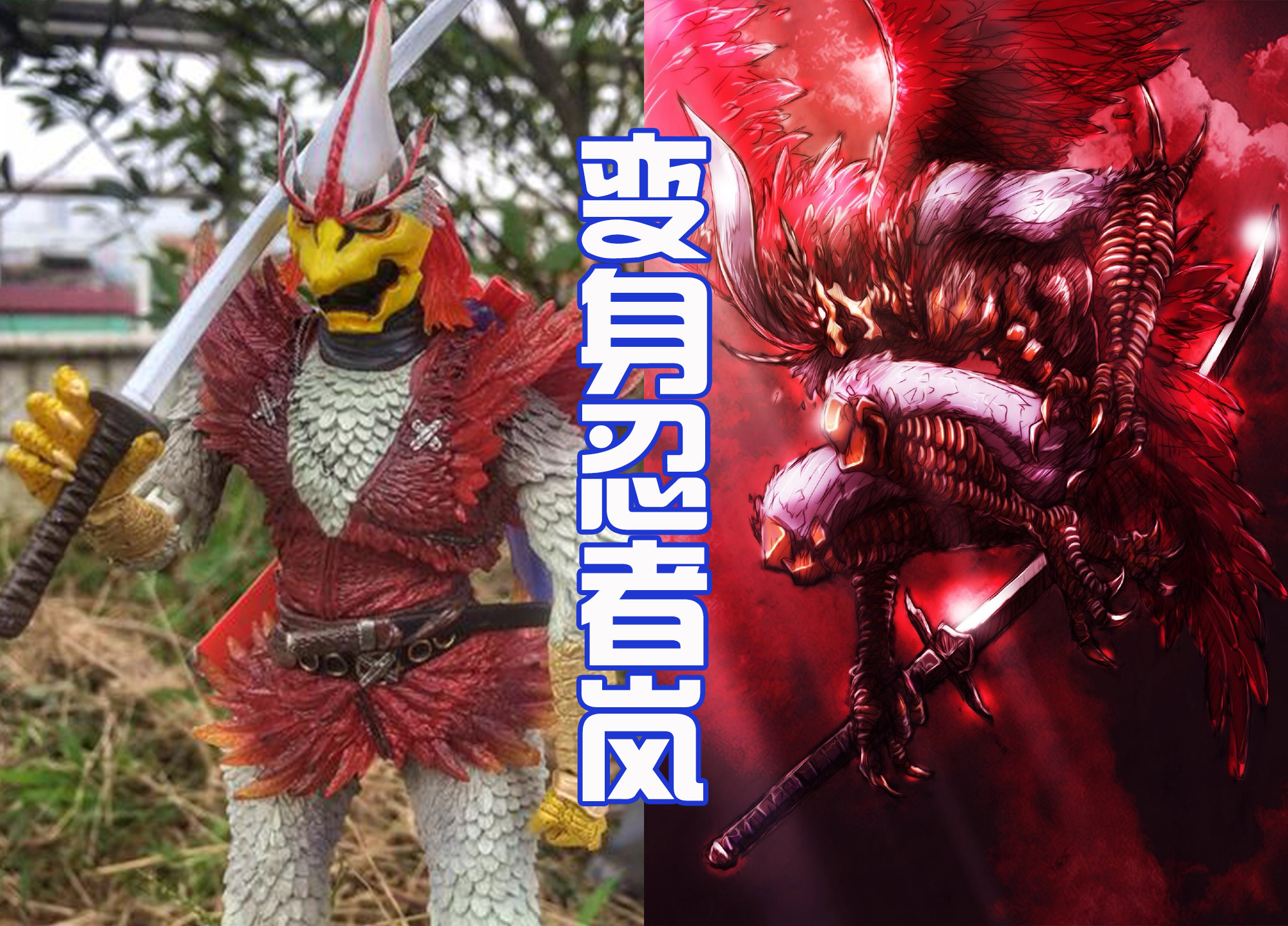 变身忍者岚是东映早期的特摄英雄,男主疾风为了保护世界和平,让父亲把自己改造成变身忍者,成功后的疾风成为变身忍者岚。随后变身忍者岚开始和血车党战斗。变身忍者岚有点像一只人形怪鸟,手中拿着武士刀,看起来很有趣。而后藤绘制的变身忍者岚就有点邪恶了,就好像一个反派一样。整体都以血红色为主,背后拥有巨大的翅膀和锋利的爪子。这样的变身忍者岚帅吗?