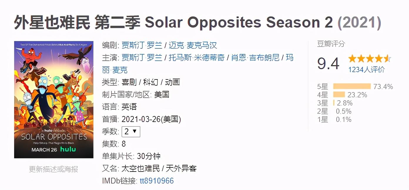 豆瓣上,《外星也难民》首季9.1分,第二季9.4分。