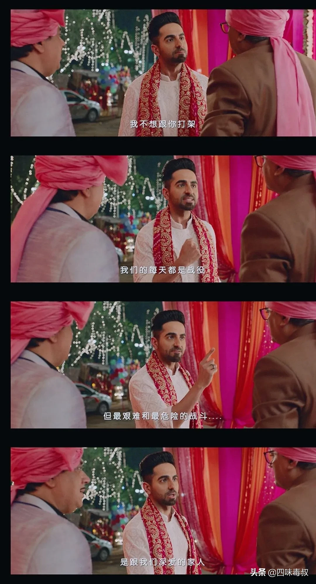 比如在婚礼现场,哈曼的叔叔查曼用衣服盖住两个男人接吻的画面,而查曼的妻子解释说这是一种婚礼上的习俗,两个人用嘴交换豆蔻种子。