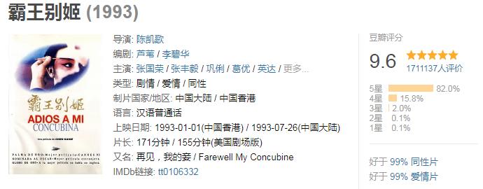 想象归想象,电影不能耽误看,真的发现九几年的电影市场真是相当的灿烂,就连内地都涌现出了不少的好片子,就比如陈凯歌这辈子都无法再超越的巅峰《霸王别姬》,