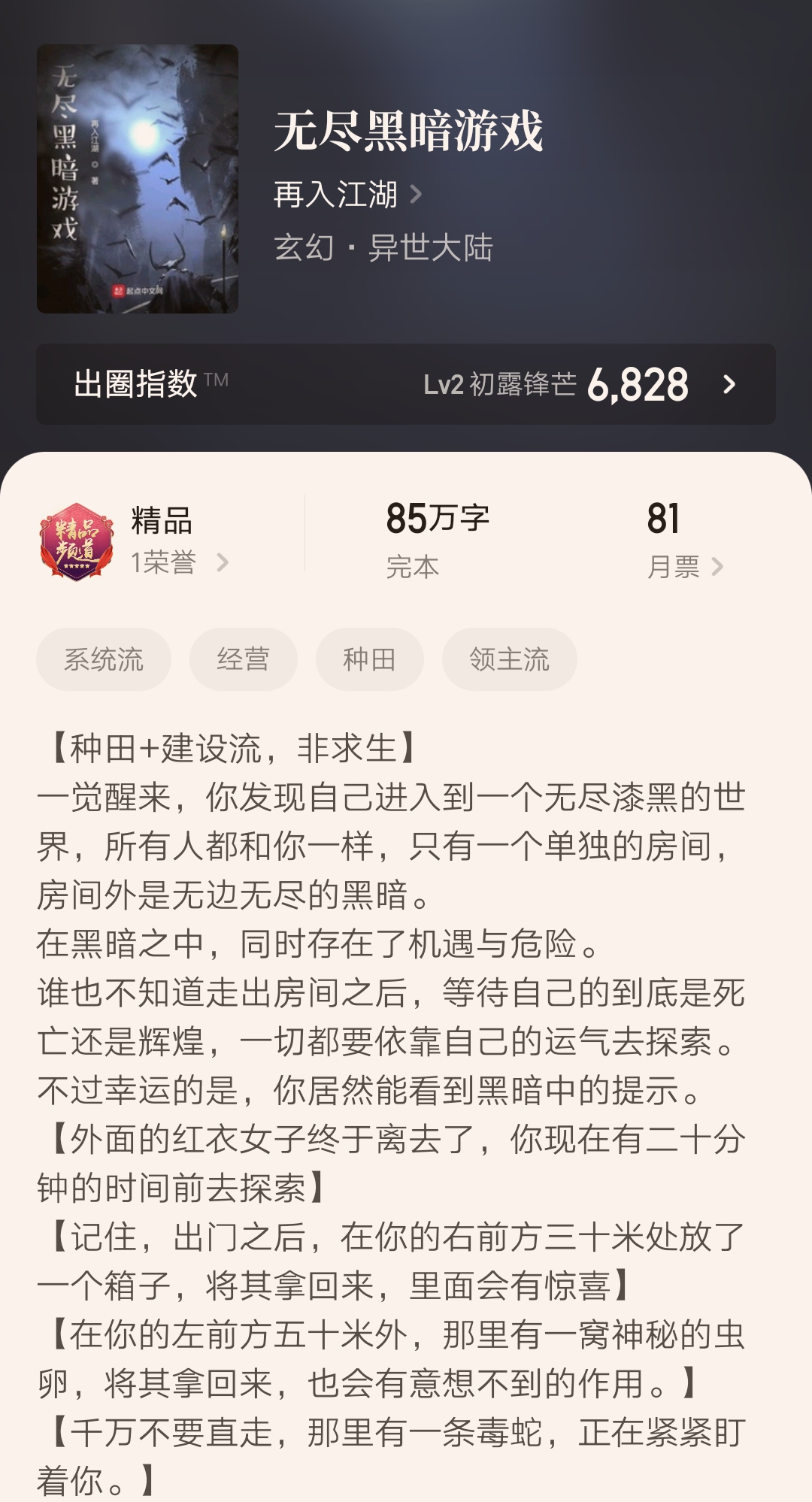 如果你正在书荒,又喜欢看完结作品,可以考虑试试。