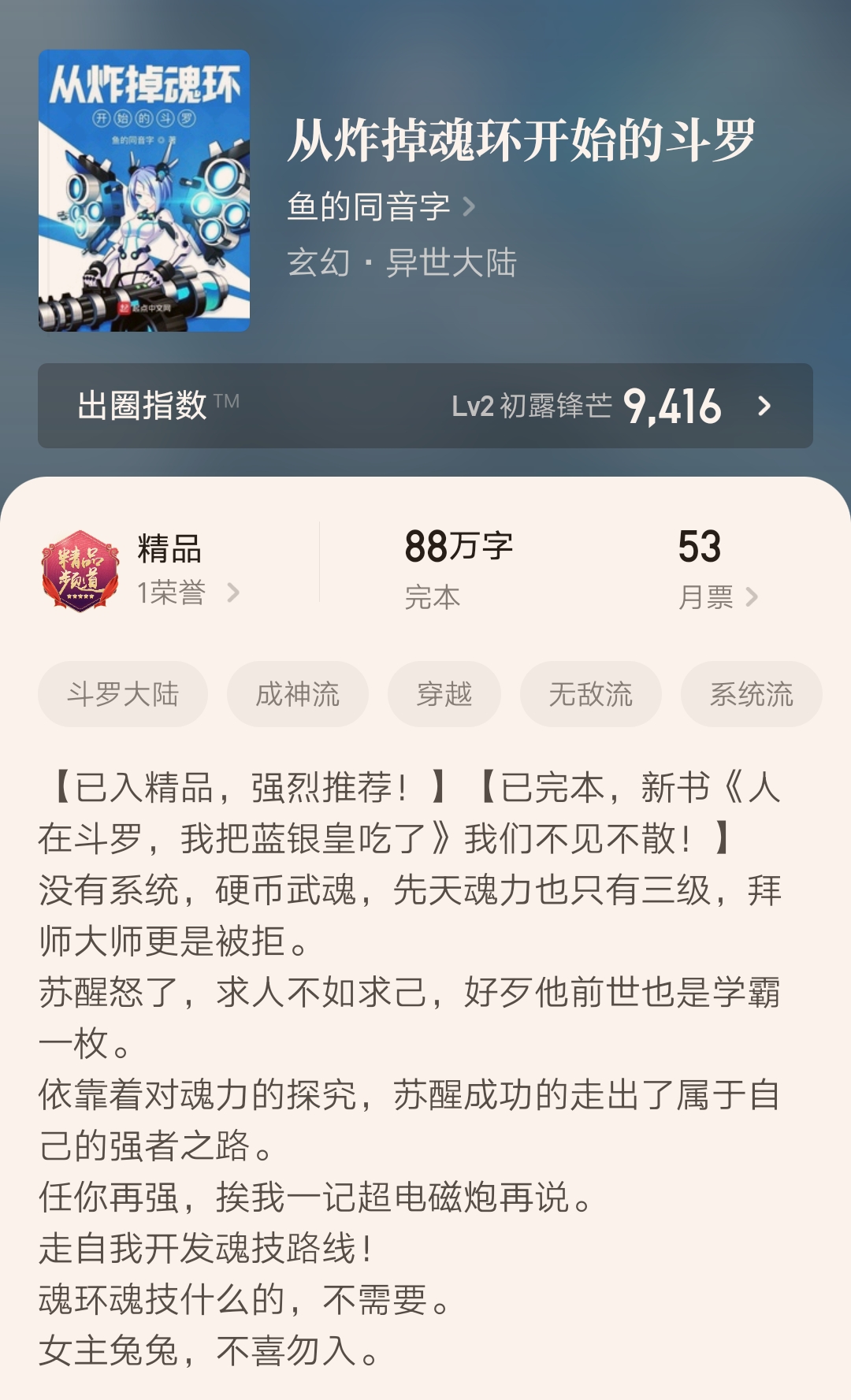5、《从炸掉魂环开始的斗罗》88万字完本