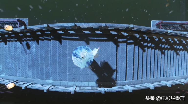 翩翩飞雪中的一袭油纸伞,这极简的对称构图,简直把江南之美展示到淋漓尽致。