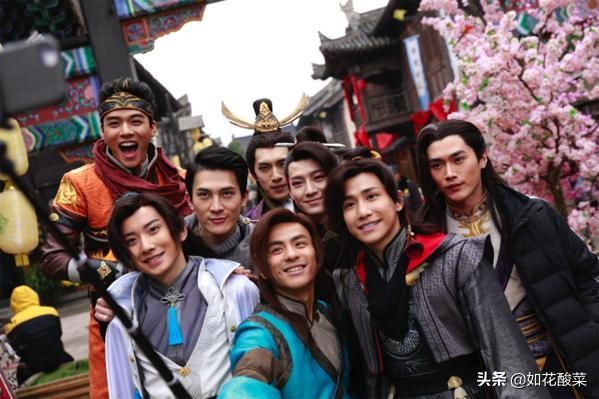 这个辟闾,服装就很中二,短发造型加上发带,龚俊仿佛孙悟空的山寨,当时的宣传主要是表情包崔成国,谁能想到左边角落的中二少年,几年后成为c位?虽然是跑龙套,龚俊在剧组合照的时候,也是很开心的,你看下图,龚俊分明就在边缘,甚至快被挤出画面之外,但是龚俊高高站起来,开怀大笑的样子,真的很有感染力。