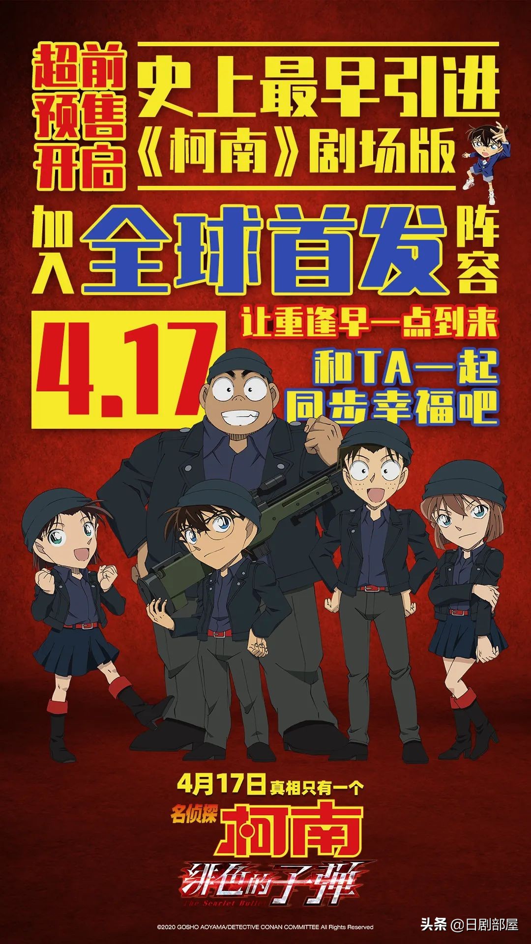 《名侦探柯南》最新剧场版《绯色的子弹》的中国内地上映日期确定,4月17日,就在下周六,正式海报同时公开。
