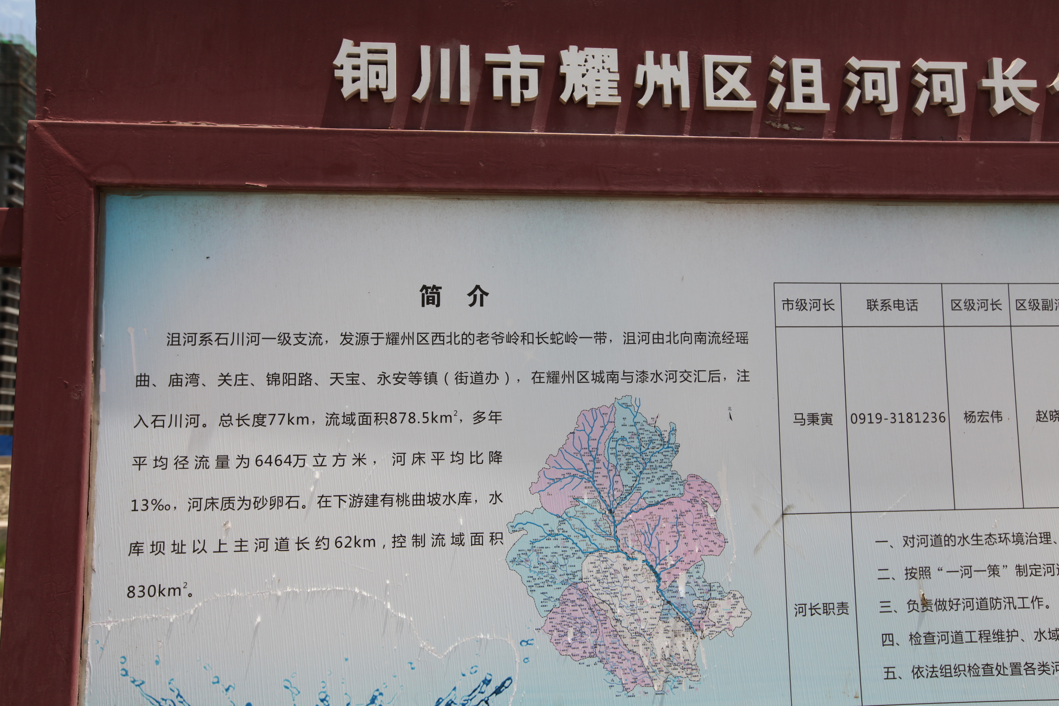 手机导航上查不到令狐德棻墓,故我们先开车到达了耀县县城。进入城中,一路上停车问过多人,都问不到具体的方位。后来从一位快递员那里打听到了前行方向,而后驶入华原街,穿过一个新做的水泥牌坊,再前行两公里驶出了县城。在一条河旁,李欣宇从一个卖西瓜的妇女处打听到了杨家河的方向,而后沿着河边之路驶向一座高高的大桥,在桥的下方无意间看到一个简易的门楼上写着“唐·令狐故里——杨家河村”。众人欢呼找对了地方。继续前行不远,见到了一座不大的水泥桥,停车于此打问路径。我看到旁边的介绍牌上写明此河名为沮河,不知道古人为什么起出这样的河名,显然我们找对了目标,心情一点都不沮丧。