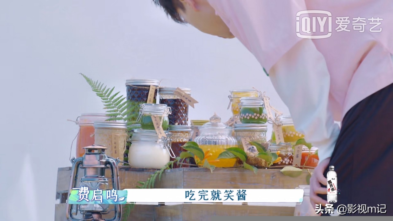 第一个出场的嘉宾是费启鸣,他到达目的地以后,首先看到的是各种春日酱料,里面包含时间静止酱、隐身酱、大红大紫大黑酱、吃完就笑酱、早点回家酱......