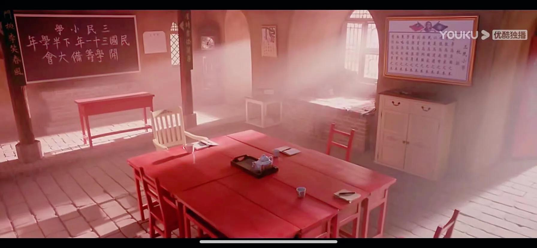 随后校长和裴魁山、周铁男三人在教室里说话,一声枪响打破了平静,众人离开教室,教室看起来那样充满阳光,好像故事开始的样子。