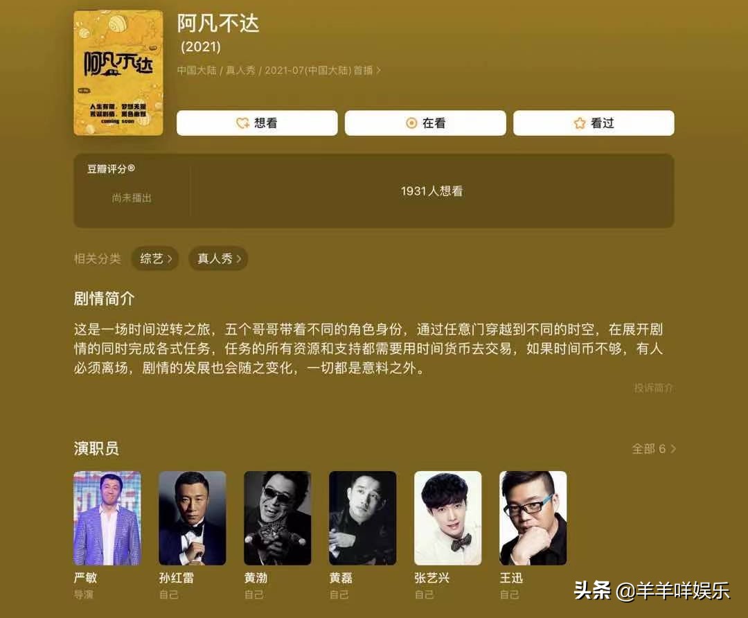 但前段时间的一则消息却点燃了观众的激情,网络曝光了鹅厂联合导演严敏将要打造的新综艺《阿凡不达》。